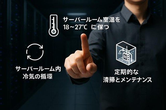 温度計やセンサーを設置し適切な温湿度環境を維持することで、サーバーの安定稼働を実現できます。