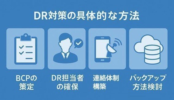 この分析結果に基づき、影響度の高い業務から段階的に復旧させるための枠組みを整備することが必要です。DR対策は、この枠組みに沿ってITシステムの復旧方法や必要なリソースを具体化する役割を担い、事業全体の早期再開を支える中核要素となります。